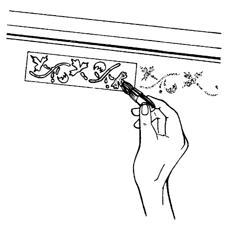 После того как рисунок будет нанесен, снимите трафарет и продолжите работу на следующем участке стены.