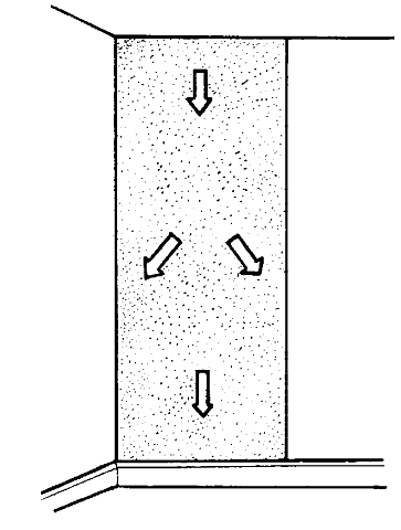 Приклеивать полосу начинайте с верхнего ее конца, постепенно спускаясь к середине и нижнему краю. Обои расправляйте чистой тряпкой или щеткой в направлении от середины к боковым кромкам, чтобы удалить из-под них пузырьки воздуха и расправить морщины (рис. 4). Полосы располагайте строго вертикально, иначе рисунок может не совпасть. Обои приклеивайте так, чтобы швы шли против света, это сделает их менее заметными.