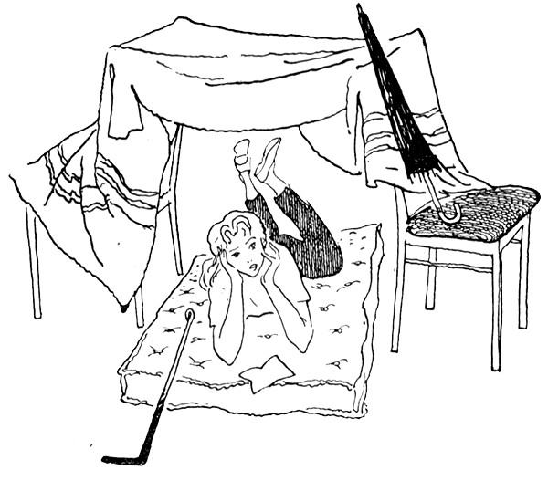 Она положила матрац перед палаткой, поставила отцовский зонтик, сделав из него превосходную мачту с черным флагом. Вот и припасы у нее готовы: две дюжины ячменных лепешек, немного рома, порох и две морские куртки — на одной она будет спать, а другой прикрываться ночью.