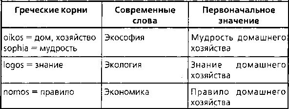 Этимология слова «экософия» напоминает слова «экология» и «экономика».