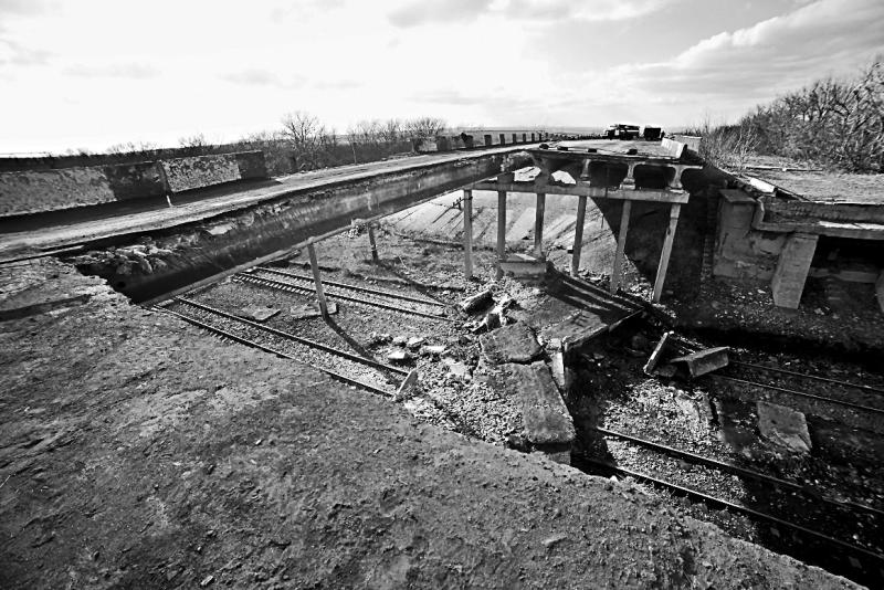 По этому почти разрушенному мосту Захару всё же удалось провезти собранную гуманитарную помощь в Дебальцево