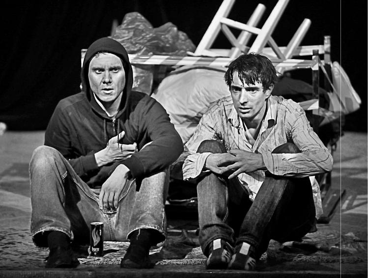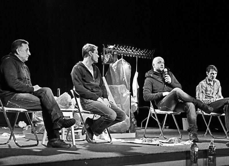 После спектакля. Режиссёр Владимир Дель, Захар Прилепин, актёры Роман Данилин и Михаил Сиворин