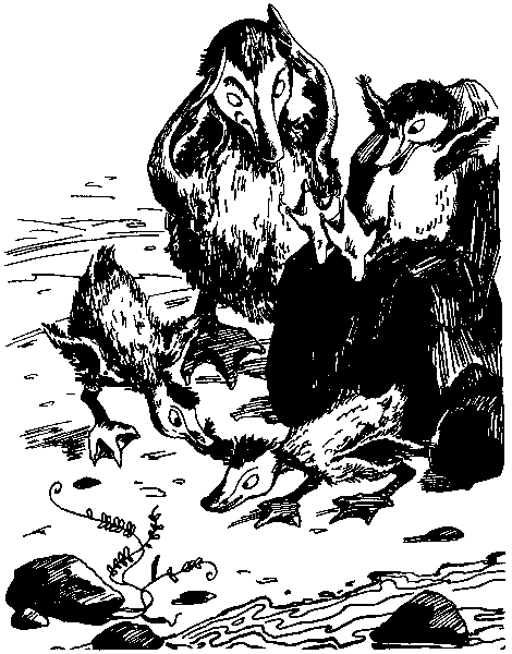 — Начали! — крикнула Слирри и нырнула. Тотчас раздалось: «Бульк! Бульк! Бульк! Бульк!» — это нырнули четыре гагачонка. Только мама не принимала участия в игре, но с интересом следила за играющими.