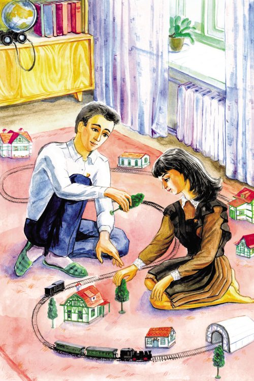 Потом Андрей откуда-то достал те самые немецкие домики, которые дядя Толя привозил из командировок и которые они вечерами с Андреем клеили. Мы расставили домики вдоль дороги. Как это было здорово!