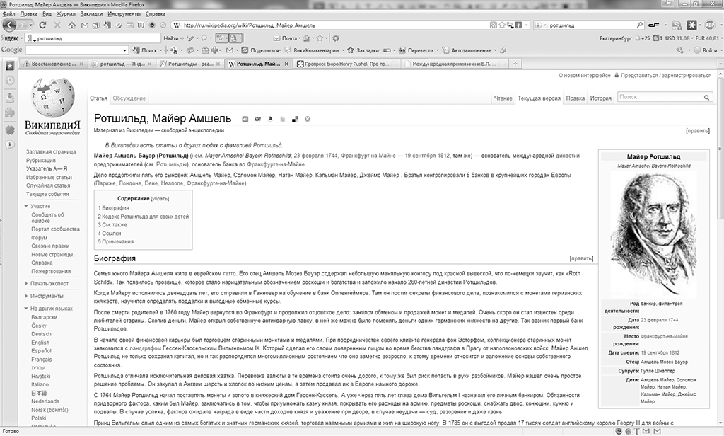 Рокфеллеры – самые знаменитые миллионеры США. Сначала Джон работал клерком. А через девять лет стал владельцем завода. Получается, что если мне сейчас устроиться клерком, то в 24 года я уже могу купить завод. Где он был эти девять лет, на чём заработал деньги, чтобы купить завод? Ответ простой. Опять же – заработал на войне. Продавал мундиры и всякое такое. Сейчас ещё гляну, на чём Ротшильды зарабатывали… Не, нормально, сначала один из сыновей продал поддельные драгоценности, а потом опять кредиты на войну выдавали.