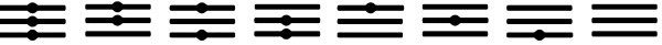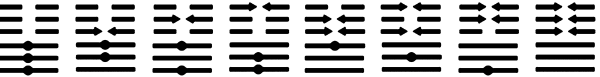 Теперь можно было строить информационную ДНК. Для первой цепочки виртуальной молекулы бралась одна из триграмм во всех возможных, то есть в восьми вариантах. Например, триграмма Земля.