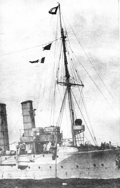"Сидней" ("Sidney"). Год спуска-1912; D- 5700 т; скорость – 26 узлов; вооружение: артиллерия – 8-152-мм/50, 4-47 мм торпедные аппараты – 2-533 мм (подводн.); бронирование: палуба – 26 мм, броневой пояс – 76 мм; запас топлива – 1000 т; мощность механизмов (S. Н. Р.) -28 000; L- 199,2 м, В – 15,2 м, Г-4,8 м; экипаж – 400 чел.