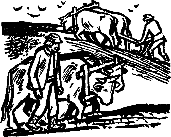 Волы, умные животные, зная голос хозяина, понимали, что от них требуется. Повинуясь, где нужно, и не обращая внимания на зряшные окрики и взмахи кнута, они ровным шагом терпеливо тащили свое ярмо и соху, разворачивая борозду за бороздой во влажной земле.