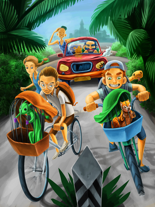Когда Чанда и Хариш в полном изнеможении попадали в траву, троица друзей запрыгнула на свои велосипеды и изо всех сил завертела педалями. Ребята поехали в противоположную от города сторону, к горе Спящий дракон, у подножья которой протекала Большая Мутная река и начинался тропический лес.