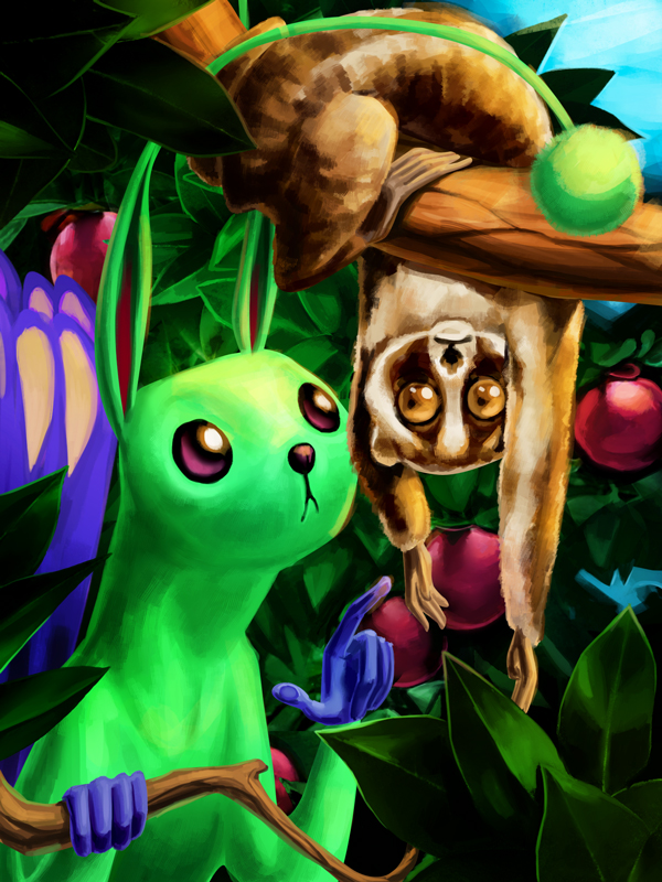 Хрумик в очередной раз стал тормошить уснувшего лентяя, и тот неохотно приоткрыл свои огромные глаза.