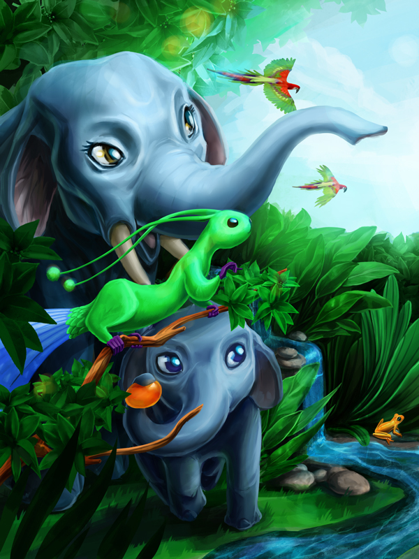 – Давай, подкрепляйся перед дальней дорогой, – добродушно проговорила слониха.
