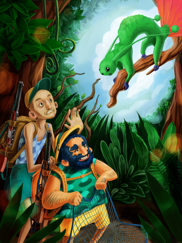 Но ждать, пока охотники набросят на него сетку, Хрум не стал. Он молнией взлетел по пальмовому стволу, оттуда по извилистому лиановому мостику перебрался на другое дерево, а с него на следующее. Совершать столь стремительные маневры ему помогали природная ловкость, присоски на лапках и, конечно же, замечательный хвост. «Эти существа совсем не похожи на зверей, – размышлял он. – Тогда кто они и что делают на нашей территории?»