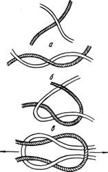 Соединять концы пряжи при перемотке лучше всего трикотажным узлом (рис. 1). Делается это так: после завязывания обычного узла конец каждой нити должен разместиться параллельно ей.