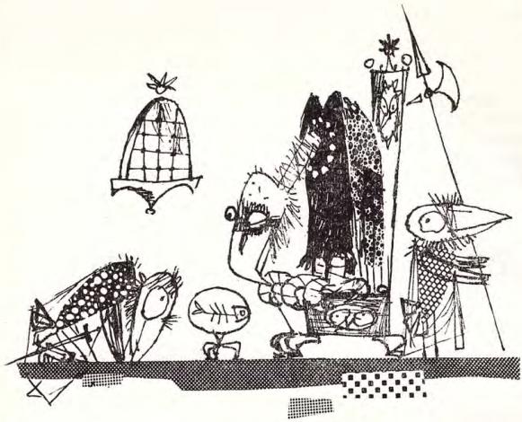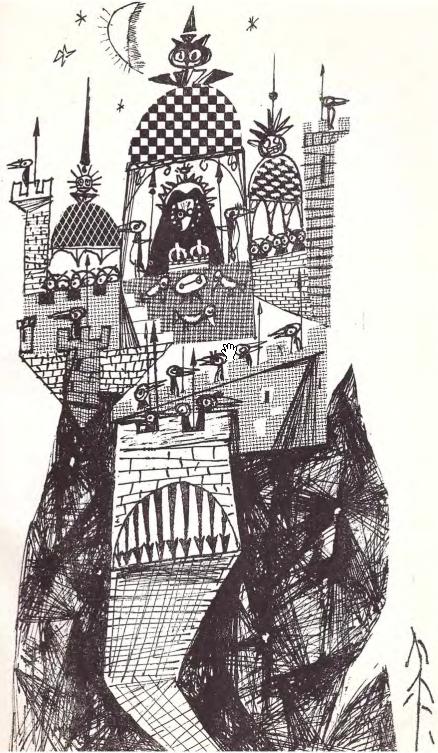 Замок злого Государя стоял на неприступной скале за городом. Стены его были построены из камня и железа. Перед коваными воротами и у бойниц и днем и ночью мелькали серые плащи стражников. Их длинные клювы блестели, как сабли. Никто не мог приблизиться к замку, не попавшись на глаза злой и зоркой страже.