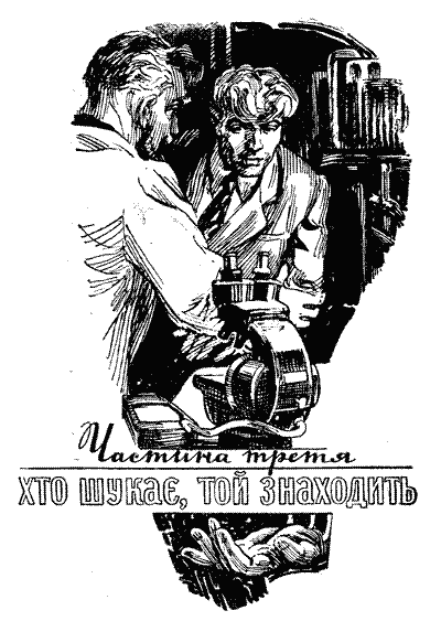 От про це зразу ж і згадав Микола, коли Федір розповів йому про свої турботи. А лампи! його лампи, які дають можливість загнуздати всю до останку енергію найвищих частот, — саме те, що потрібно для сушіння! Ніхто навіть не пробував шукати розв’язання проблеми в таких високих частотах, а тепер ясно, що саме в них і ховається це розв’язання!