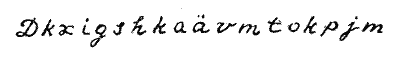 Це ще мало, звичайно. Слова тексту, безперечно, скорочені. Крім того, вони не розділені між собою. Десять, п’ятнадцять букв уже повинні показати, чи є тут хоча б ознаки слів.