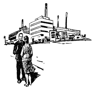 Чоловік обертається на голос дівчини. В нього обличчя, як у людини, яку одірвали від думок. Аж ось його освітлює привітна посмішка. Він пригадав Валю. Ще позавчора, в день його приїзду на завод, старший інженер познайомив його з цією дівчиною, сказавши: