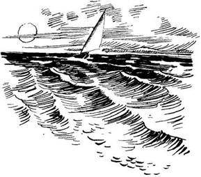 Ніс яхти то високо задирався над водою, то глибоко заривався в хвилю, підкидаючи догори білі буруни. Сонце вже висіло низько, і його промені ковзали по зелених хвилях південного моря. До червоного сонця швидко летіла сіра пухнаста хмарка.