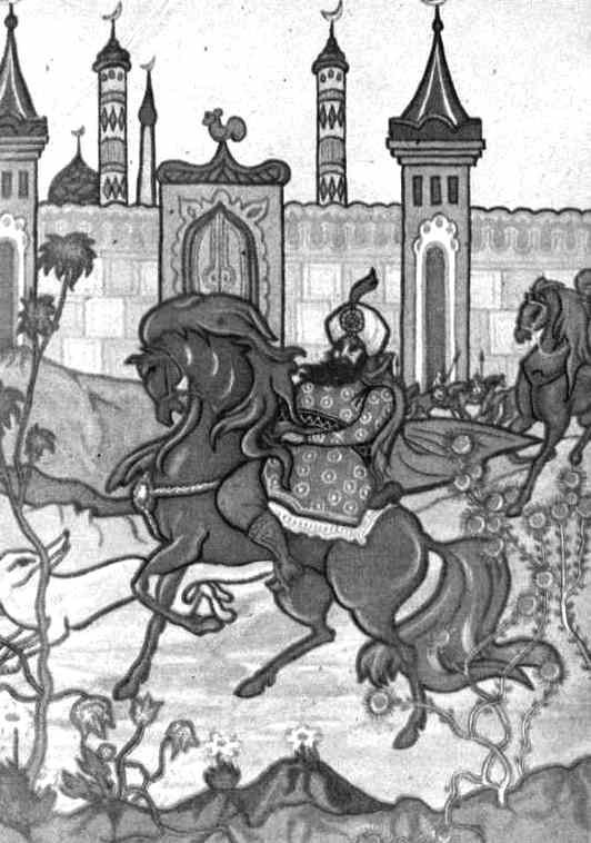 И царь-обжора действительно отправился в путешествие. Проворный Лис обогнал царский караван и явился к Падишаху.