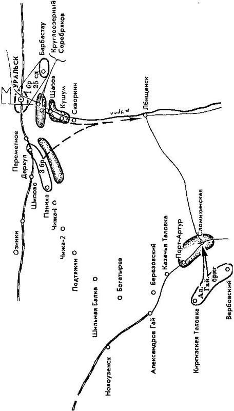 7 февраля М. В. Фрунзе выехал к войскам в Уральск. Штаб Николаевской дивизии и ее 1-я бригада к его приезду находились в Уральске; 2-я бригада располагалась в районе хуторов Серебряков и Круглоозерный со штабом бригады в последнем; 3-я — в хуторах Паника, Широков, Астраханский, Чернухин со штабом на станции Деркул; Александров-Гайская бригада занимала поселки Вербовский и Таловка Киргизская [488] .