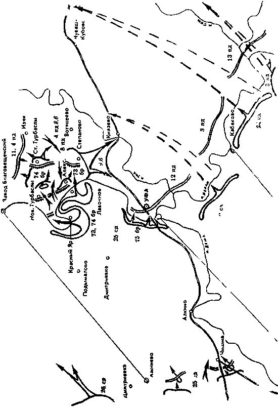 31-й дивизии, составлявшей армейский резерв, занять район Казанское, Пономарево, Асаново, Сухарево, Нурлино, обеспечить уступным положением левый фланг 25-й дивизии и движение 26-й дивизии на Бирск (схема 15).