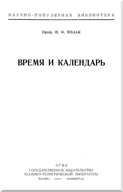 «Река времён в своём стремленьи Уносит все дела людей».Люди научились точно учитывать время, когда развилась астрономия — наука о небесных светилах. Только благодаря астрономии мы умеем точно ответить на вопросы: «который час?», «какое сегодня число?», так как эта наука дала правила выверки часов и правила счёта дней и годов, то-есть то, что называется календарём. Объяснению этих правил и посвящена предлагаемая брошюра.