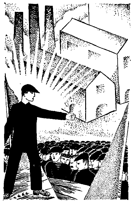 Гудит толпа. Синими волнами, серой пеной бурлит — синие блузы и грязные кепки.
