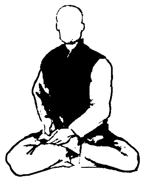 Кекка-фуза (лотос). Левая стопа на правом бедре, правая на левом