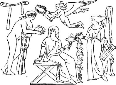 Финикийский господь Адонис подносит богине Астарте результат своей охоты — зайца.