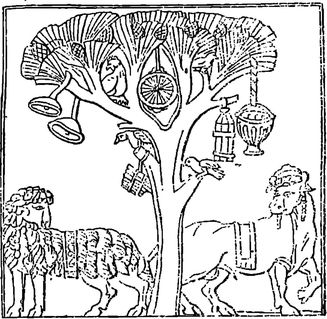 Украшенная различными принадлежностями культа сосна Аттиса, выдающая его древесную природу.