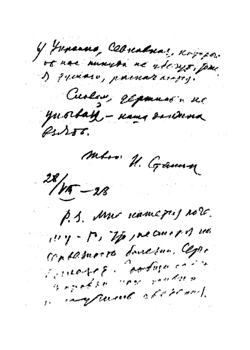 Твою записку получил. Видимо, с хлебом дела пойдут. Приходится признать, что Бухарин теряет возможность повести „форсированное наступление на кулака“ путем нового повышения цен на хлеб. Можешь ему сказать, что я вполне понимаю его положение и почти-что соболезную.