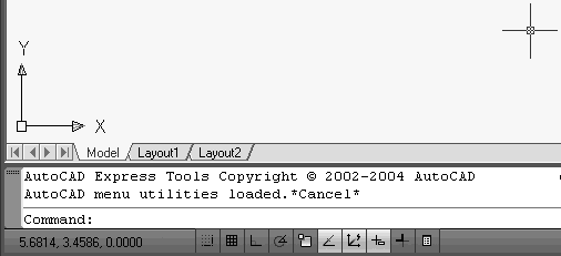 Центральная область рабочего окна программы называется графическим экраном. В этой области выполняются все построения. На графическом экране указатель мыши приобретает вид перекрестья (рис. 1.3) и способен выполнять функции, используемые в проектировании: привязка к объектам, задание координат и направления. При выходе за границы графического экрана указатель приобретает привычный вид.