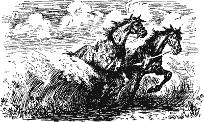 Невольно вспомнились Гнедой и Резвый: как они выбивались из сил в непролазной грязи во время отступа и как они радовались его ласке. Кто же пожалеет коня, кроме человека? Теперь же вот он сам, Вадимка, собрался гнать рыжего изо всех сил на целые сотни вёрст, гнать без жалости. А этот несмышлёныш так ждёт от него защиты!.. И сердце Вадимки дрогнуло. Почему это добродушное существо должно отвечать за свою злую хозяйку?