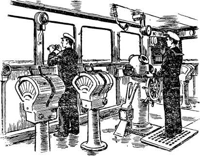 Гирорулевой расположен тут же, рядом со штурвальной тумбой. Он избавляет рулевого от хлопотливой и напряженной работы у штурвала. Без всякой человеческой помощи удерживает он судно на заданном курсе, не дает ему рыскать. Стоит судну по какой-либо причине сбиться со своего курса, как гирорулевой, получая от гирокомпаса точное направление движения, сразу исправит положение. При помощи особого устройства, соединенного с рулем, гирорулевой возвращает судно на прежний заданный курс.
