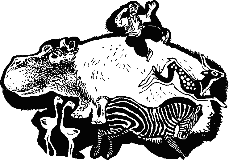 Репетиция аттракциона Петросяна задерживалась: надо было договориться с осветителями, отнести в оркестр ноты, установить сложные декорации. А народу в цирке тем временем становилось всё больше и больше: ведь артисты цирка ездят по всей стране, кочуя из одной программы в другую, и о многих номерах и аттракционах знают только по рассказам и газетным рецензиям. Всем хотелось посмотреть работу Петроса Петросяна. Там были заняты, как говорилось в афише, экзотические животные, то есть редкие животные далёких стран. «Гвоздём» этого аттракциона были дрессированные бегемоты, с которыми не выступает больше никто из советских, да, пожалуй, и зарубежных дрессировщиков. И даже приготовления к репетиции были необычными. Ну, скажите, видали ли вы когда-нибудь в цирке… занавес — такой, чтобы скрыл от зрителей всю круглую арену? Нет? А тут по команде Петросяна на манеж опустился откуда-то сверху огромный чёрный колпак, похожий на гигантский колокольчик — верхушка его была подтянута повыше, а края плотно прилегали к барьеру. И оттуда, из-под колпака, доносились какие-то непонятные звуки, будто кто-то большой недовольно фыркал и бурчал.