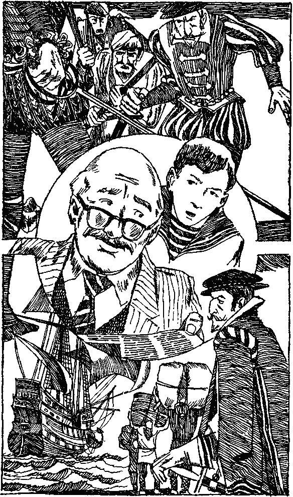 От такой наглости сэр Джонс оторопел. Недолго раздумывая, он направился к незнакомцу с намерением оторвать ему уши. Какие-то люди преградили ему дорогу. Но молодчики Джонса, поднаторевшие в абордажных схватках, накинулись на них, как волки на овец. Побледневший незнакомец обнажил шпагу и настороженно ждал. Хозяин корчмы пытался схватить Джонса за рукав и что-то сказать, но разъяренный Монах грубо оттолкнул его прочь. Он взглянул на шпагу в руках противника и криво ухмыльнулся — этих дворянских штучек он не понимал. Потом вытащил из ножен тяжелый пиратский нож и с пяти шагов всадил незнакомцу в грудь. Тот свалился, даже не охнув. Взволнованный хозяин подбежал к нему, расстегнул костюм, прижался ухом к груди. Сердце не билось.
