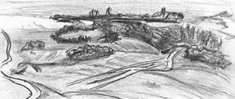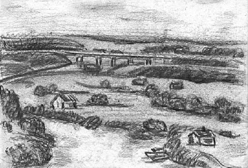 15.07.84. Пишем с 8-го числа один и тот же пейзаж: утром, вечером и снова вечером – его же, но с мостом. Утром ещё стога с насыпи, а за ними Тригорское. Сюжетов больше не находим, хотя всё вокруг красиво. Долго мучились около Михайловского и Савкиной горки: то ли не закомпоновать, то ли ещё чего-то, но писать покатам не стали.