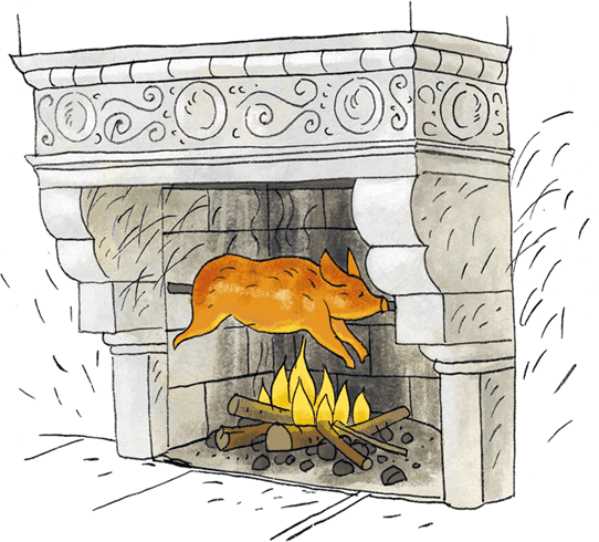 В средневековых замках Германии строили огромные камины, в которые можно было поместить целого кабана и пожарить его на вертеле.