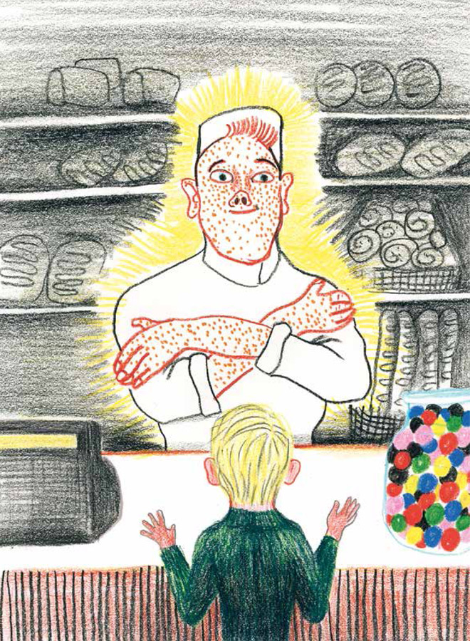 Он классный. Угощает нас старыми булочками. А если старых не остается, то и свежими. – Это вам для собаки, – говорит он, хотя никакой собаки у нас нет.