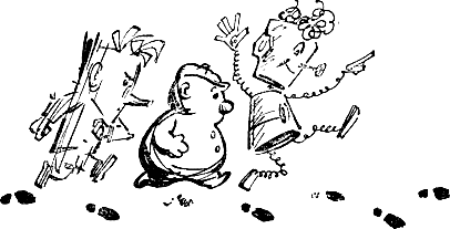 Конечно, и у него была своя песенка — песенка-наоборотка, и пел он ее своим деревянным, трескучим голосом всегда невпопад, чаще всего, когда другие спали. Послушайте и ее: