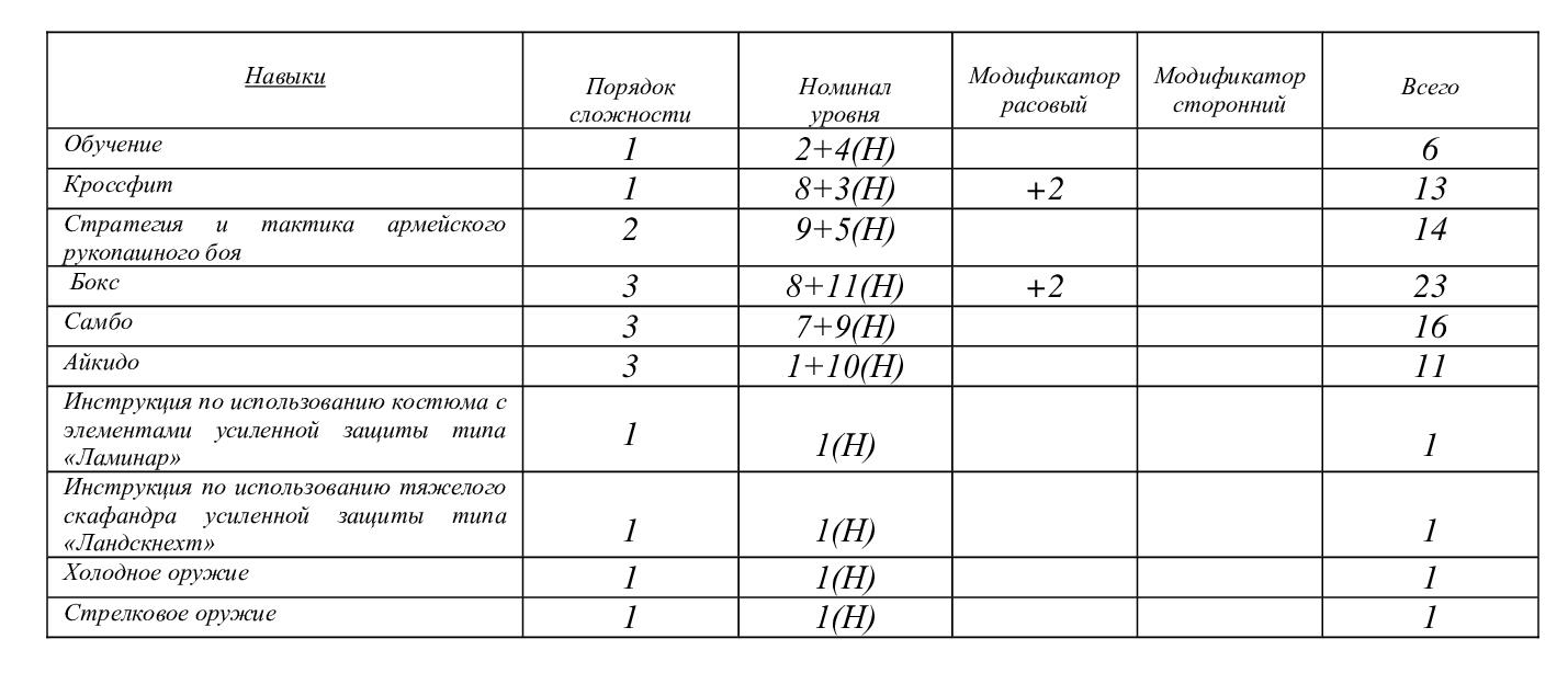 Итого — за «Бокс» и «Кроссфит» три единички кидаю в «Силу физическую», за «Самбо» и «Айкидо» — две, в «Выносливость», а за «Стратегию и тактику»… бли-ин, только не в «Интеллект»! Он же Гарику и не нужен, правда? Так что, пусть она пойдет в «Волю»… ага.