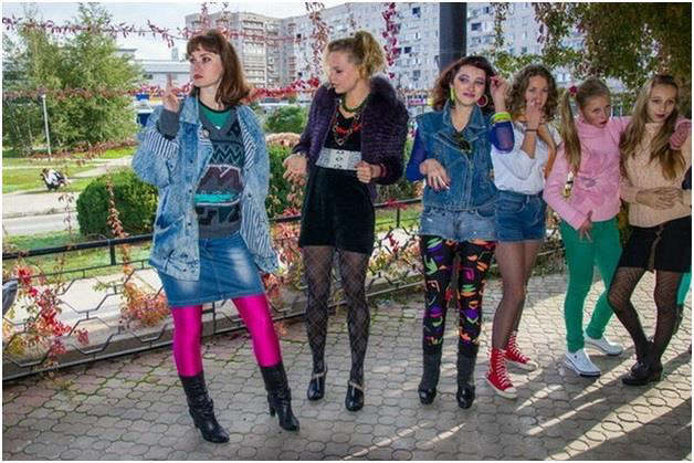 Тут во входную дверь впорхнула девица весьма откровенного вида, у меня аж челюсть слегка зависла. На ногах у неё были лосины (кто не помнит, что это, смотри картинку) зелёного цвета, далее шла жёлтая, как цыплёнок, блузка и красный платок, повязанный, как бандана. Светофор-стайл. Но самое интересное заключалось в том, что блузка была заправлена в лосины… вот ни разу не видел такого выверта… и все её округлости и впадины ниже пояса были представлены на всеобщее обозрение. Довершало картину лицо с ярко накрашенными губами и ресницами. Женщина со сниженной социальной ответственностью, пришла мне в голову формулировка из будущего. И ещё строчка из песенки в голове закрутилась «Твои зеленые лосины меня сейчас сведут с ума».