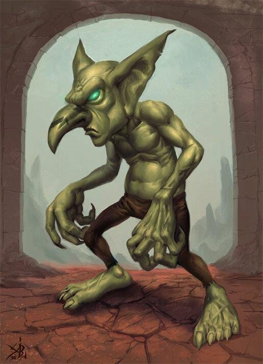 Сами гоблины выглядели стандартно. Хм. Обычно их описывают маленькими неказистыми зелеными человечками. В принципе такое описание очень хорошо им подходило. Они были не выше метра ростом, буквально чуть-чуть не доставали мне до плеча. Все скрюченные и выглядящие так, будто от простого дуновения ветра развалятся. Да вот копья они держали уверенно и руки не дрожали. Длинный крючком нос и большие заостренные уши. А еще очень маленькие глазки, которые смотрела на мир со злым умыслом. Нашлись тут свои обиженные миром. Блин. А одеты были гоблины кто во что. У кого-то была лишь набедренная повязка. А кто-то щеголял в изношенных штанах. Пара гоблинов даже драными рубахами обзавелась.