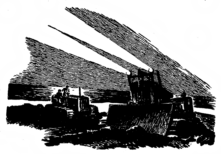 Этот парадокс — самая тяжело усваиваемая вещь в профессии. Бульдозер, ползущая мощь, толстокожий шумный бегемот, воплощение знаменитой неудержимой силы. Ошарашенный этим зрелищем новичок, в голове которого крутятся позаимствованные у телевидения картинки непобедимых армейских танков, начинает работу с ощущением безграничной власти и пытается смести все преграды на своем пути, не зная о хрупкости стального радиатора, ломкости марганцовистого лезвия, плавкости перегретого баббита и, главное, о той легкости, с которой гусеницы вязнут в грязи. Вылезая, чтобы взглянуть на машину, которая за двадцать секунд превратилась в груду металлолома, или обнаружив, что не видит собственных гусениц, оператор испытывает то удивленное чувство вины, которое захлестывает каждого человека, совершившего крупную ошибку.