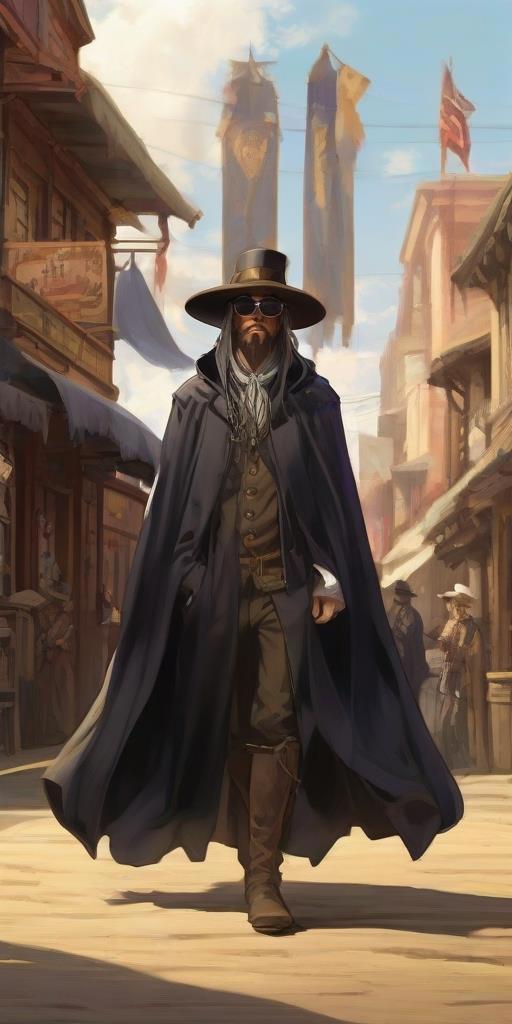 Худощавый мужчина в длинной шляпе, круглых черных очках и пыльном плаще шел по улице и осматривал окрестности. Глянув на таверну, он затем перевел взгляд на башню напротив нее и почесав подбородок взобрался туда и достав из футляра снайперскую винтовку навел ее на таверну и стал смотреть на нее, почти не моргая. Он мог ждать часами и даже сутками, как его учили в армии, так что он сидел и ждал, пока трое целей выйдут оттуда...
