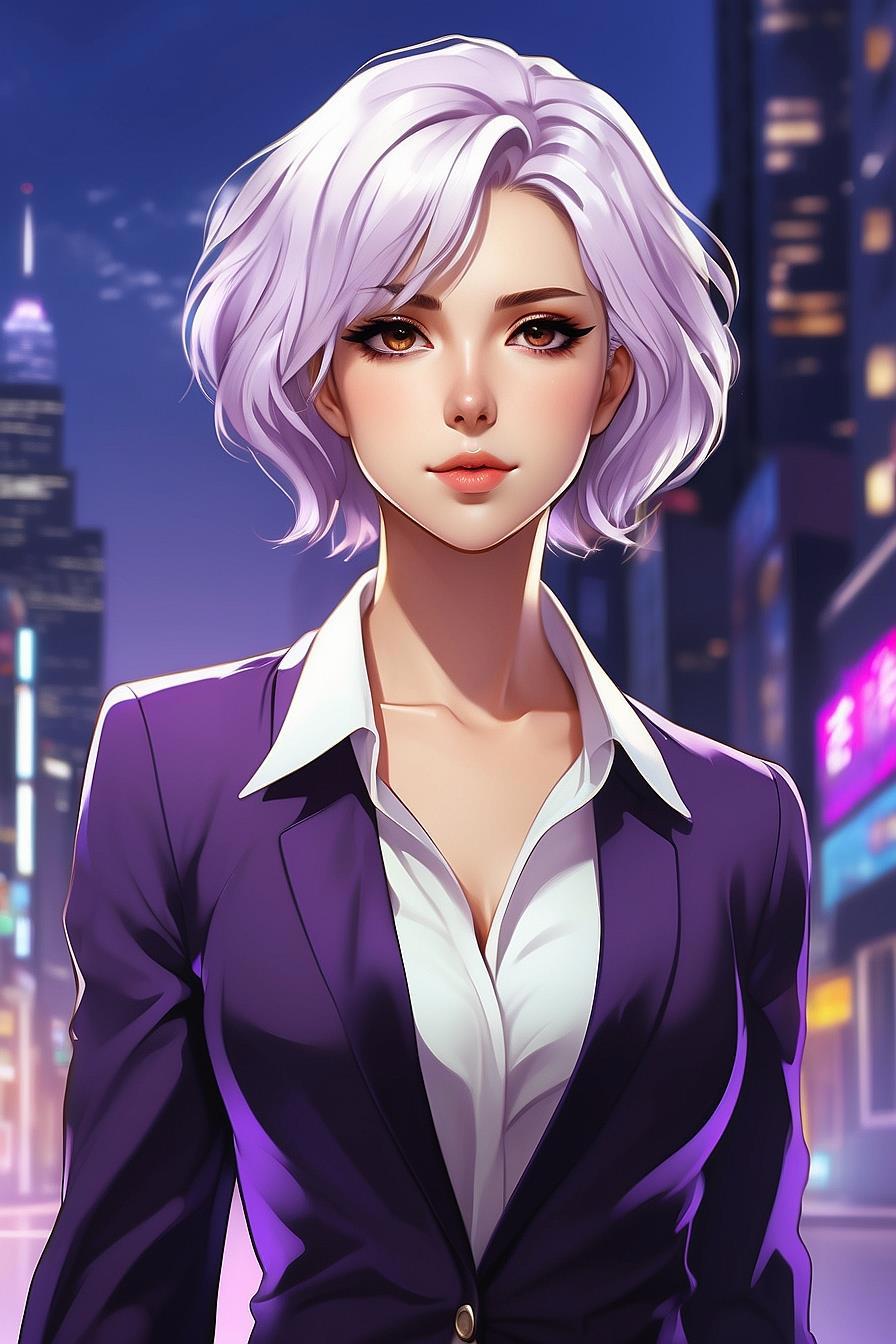 Дверь распахнулась и из нее сперва показалась ножка в дорогих брендовых брюках и туфлях, а затем из нее вышла ну прямо уж очень уверенная в себе чувиха с волосами цвета утренней лаванды, карими глазами и в пурпурном пиджаке, которая тут же глянула на нас с Синди и потопала к нам с каким-то явным намерением... что-то сделать.