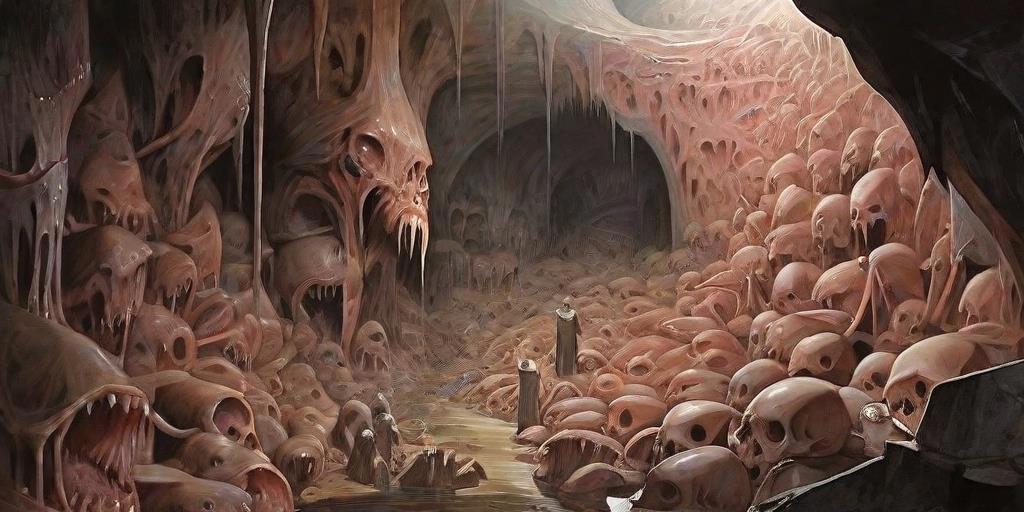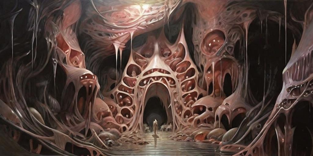 Кое-как откашлявшись от питательной жидкости, я огляделся вокруг и увидел такие же стены и потолок из плоти, покрытые костями и хитином, которые усиливали конструкцию, а позади себя увидел что-то вроде капсулы из плоти, которая торчала из стены биомассы, утыканная венами и прочими природными "шлангами".