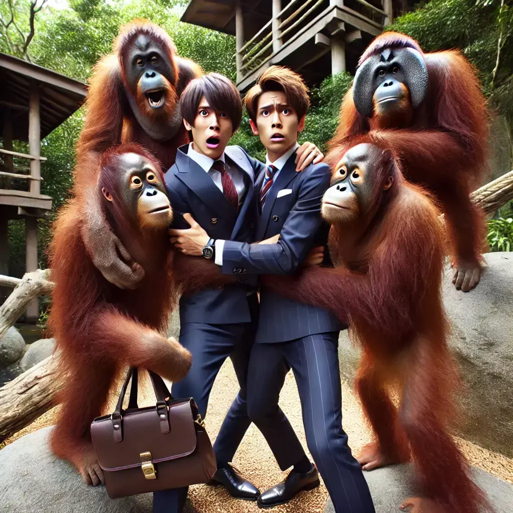Сакура сделала шаг в сторону, чтобы получше рассмотреть капуцина, как вдруг чьи-то мощные лапы сомкнулись на её талии. Один рывок — и вот она уже устремляется ввысь, выронив на землю свой телефон.