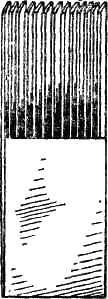 Цинубель – тот же рубанок, но с железкой, оканчивающейся рядом острых зубцов (рис. 111) и поставленной почти вертикально (86°). Служит для придания шероховатости поверхности дерева (под оклейку) и для выравнивания свилеватых и с нестандартным строением кусков дерева.