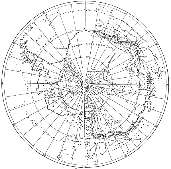 Рис. 14. Карта мощности земной коры под Антарктидой
